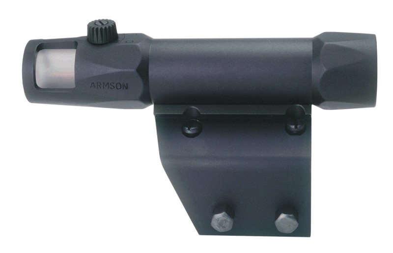 A limited number of the Gen Il Max Duty version of the original Armson O.E.G. sight for for the Mini 14 are now available (Gen l body style shown). The Armson Aiming Concept instantly merges the dot and target allowing two eye sighting with no loss of peripheral vision! Anodized aluminum body, high quality internal optics, and simple adjustments for windage and elevation. A fiber optic light source provides illumination. No batteries required. The all new Upgraded Adjuster and Knob Set is now included as a standard feature at no additional charge.